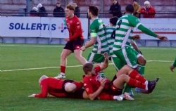 As the game was about to go into ‘added-time’ Christopher headed a clearance kick back towards the visitor’s box and when it was cleared again it fell into the path of Messenger, right channel – 30 yards out, who struck what can only be described as a ‘thunderbolt’ at the target – this time his sights were set a little lower but not low enough as it crashed against the bar.