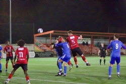 At the third attempt - postponed for waterlogged pitch and abandoned after a floodlight failure being the previous attempts - The Centurions finally completed this Third-Round fixture in the Marsh Sports Insurance (UHL) Challenge Cup against their neighbours HIGHWORTH TOWN and following an exciting match and a Penalty Shoot-out they were rewarded with a place in the Fourth Round of the competition.