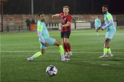 The action was end-to-end as both sides pressed at every opportunity Lines launching a free kick into the home box and Morris a cross that Manning-Butler pushed out for a defender to slice into the air for the ‘keeper to leave his box to clear near the corner.