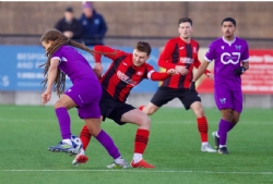 As Westfields worked the ball forward Horrell intercepted to release Bell for another run down the right flank and as he crossed the half-way line he took stock, moved forward a few more paces to deliver a terrific cross towards the far-left post where an incoming THEO JEREMY was arriving at pace to strike a tremendous half-volley, that never left the ground by more than an inch, into the net. 2-1.